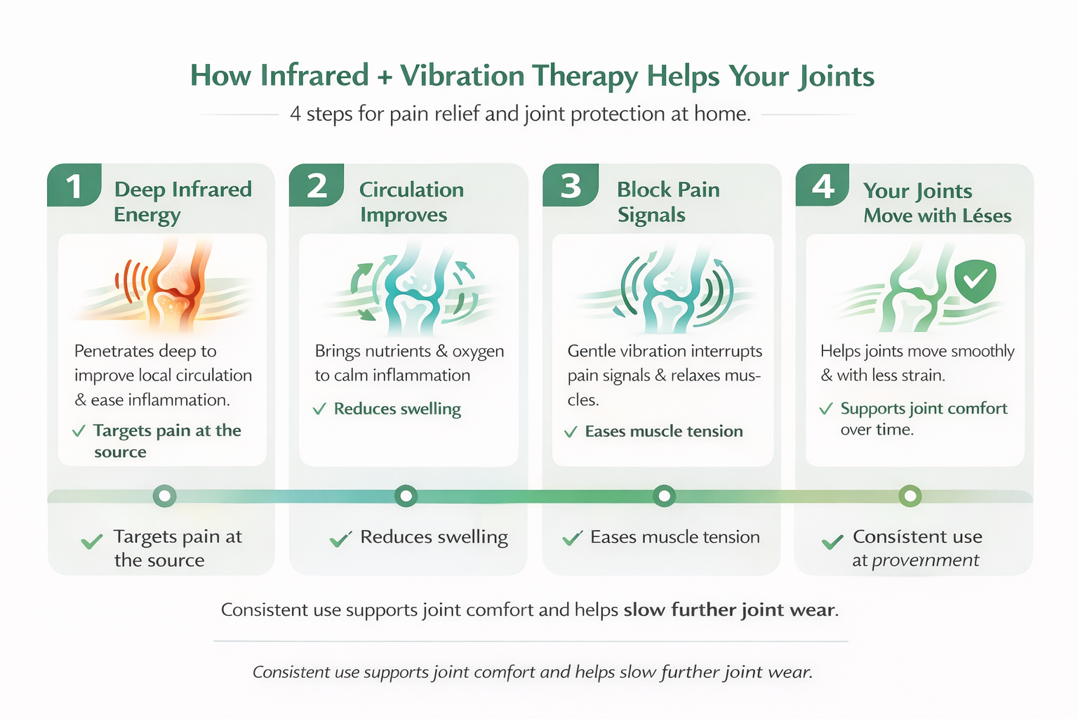 Our devices are designed to provide relief from arthritis symptoms. Infrared therapy can help reduce inflammation and pain, while vibration therapy can improve circulation and joint mobility. However, it’s essential to consult with your healthcare provider before using any new therapy, especially if you have arthritis or other underlying health conditions.